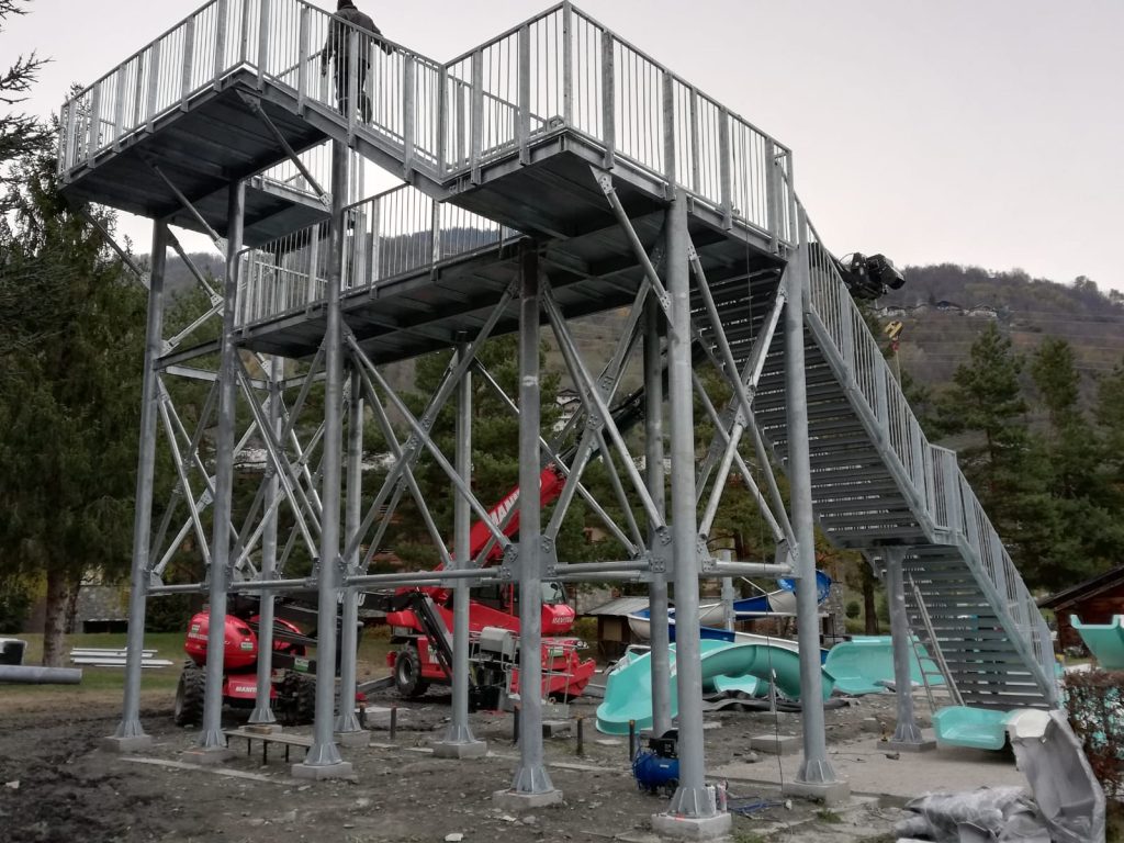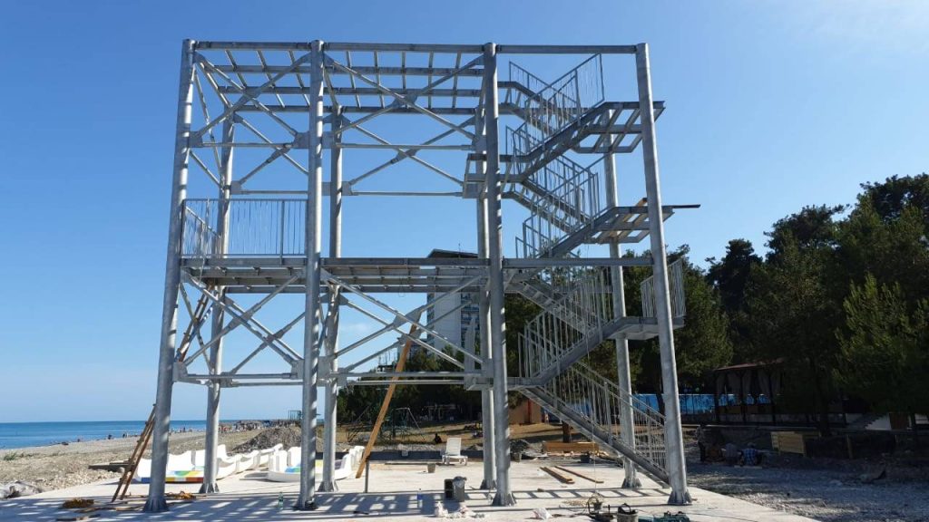 Çelik konstrüksiyon yapımında kullanılan malzemelerin tamamı daldırma sıcak galvanazdır. Uzun ömürlüdür. Aqua park sistemlerinde kullanılır.